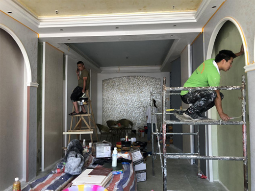 新店以兼具實用性以及藝術(shù)觀賞性于一體的墻面裝飾涂裝為主要亮點,具有夢幻珍珠般光澤、柔滑質(zhì)感,如天鵝絨般浪漫細(xì)膩;光澤也會隨著不同的光線折射而產(chǎn)生變化,營造出光與影之間的朦朧美感和奢華舒適的藝術(shù)涂裝效果。