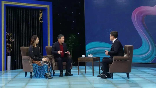 嘉寶莉集團創(chuàng)始人仇啟明(中)、董事長仇東平(左)做客央視《逐夢年代》欄目