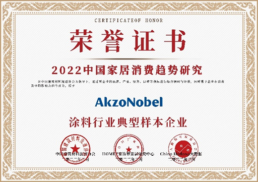 AkzoNobel榮獲“2022中國(guó)家居消費(fèi)趨勢(shì)研究涂料行業(yè)樣本企業(yè)“證書