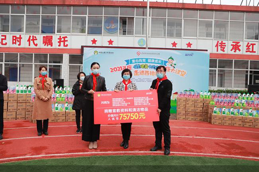 此次走進西柏坡,項目為中國工農(nóng)紅軍西柏坡八一紅軍小學、西柏坡鎮(zhèn)南莊幼兒園、孟家莊鎮(zhèn)上文都完全小學等10所小學、幼兒園捐贈了"健康小天使大禮包",包括健康知識繪本、健康跳棋、宣教知識展板和藍月亮果泡多多兒童洗手液、84消毒液等清潔物品。