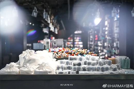 △ 美妝集合店 HARMAY 的西單更新店面,你可以看到化妝品、刷子就像大賣場(chǎng)專柜一樣平鋪開來。