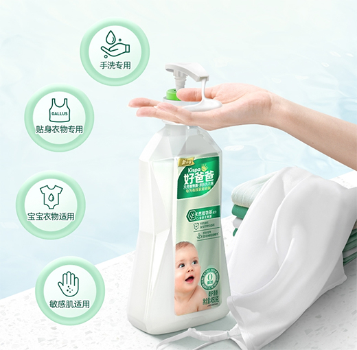 為了讓洗滌產(chǎn)品能高質(zhì)量陪伴消費(fèi)者家庭,給家庭成員更天然更溫和的呵護(hù),“好爸爸”品牌在洗衣液基礎(chǔ)上,添加了更多種類和更高含量的天然潔凈成分,完成了洗衣液的蛻變升級(jí)——研制出洗衣露產(chǎn)品?!昂冒职帧弊鳛橐I(lǐng)高端親膚洗護(hù)的日化品牌,更懂敏感肌和寶寶的日常衣物洗護(hù)問(wèn)題。