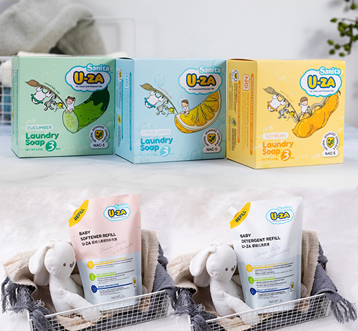 Sanita U-ZA產(chǎn)品涵蓋洗衣皂系列、洗衣液系列、柔順劑系列、奶瓶果蔬清洗系列、玩具餐具清洗等多個系列,不僅可以有效呵護(hù)寶寶肌膚,也能夠守護(hù)嬰幼兒的衣物、用品等洗護(hù)安全,從多方位解決媽媽們在寶寶成長路上面對的各種清潔洗護(hù)難題。