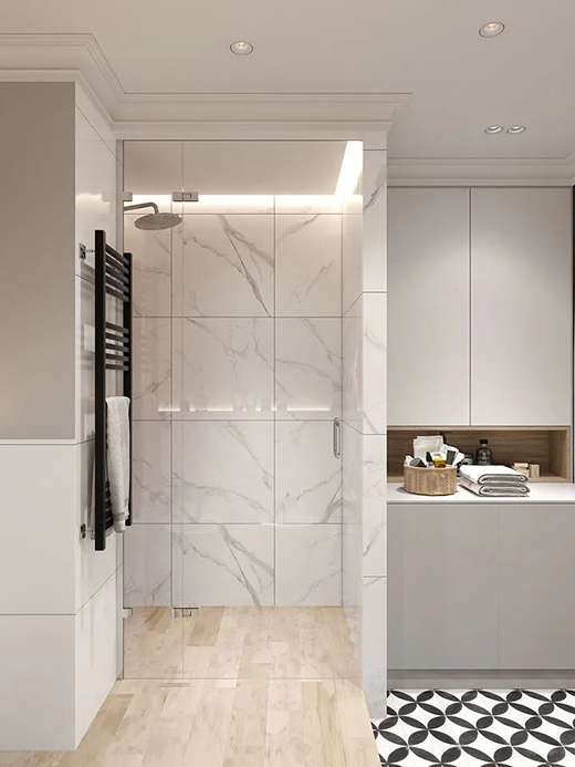 淋浴區(qū)加光源,仰頭不會直接刺眼、不被頂噴花灑擋住是關(guān)鍵。