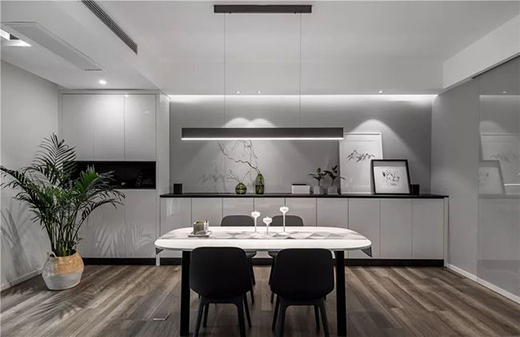 餐廳可以搭配吊燈、銅燈等燈具,如果選用吊燈,距離桌面65-85cm是最好的;餐桌另作為辦公學(xué)習(xí)使用的話,亮度也要隨之增加。