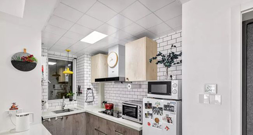 廚房如果只用一個(gè)主燈直射照明,難免會(huì)背光,最好在水槽上方和吊柜底下加設(shè)燈光,避免洗東西和切東西光線不足造成麻煩。