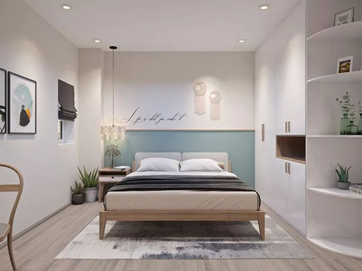 臥室最好不要直射強(qiáng)光,破壞舒適感,建議使用壁燈、小吊燈、銅燈、燈帶等局部照明緩解壓力,營造一個(gè)輕松舒服的睡眠空間。