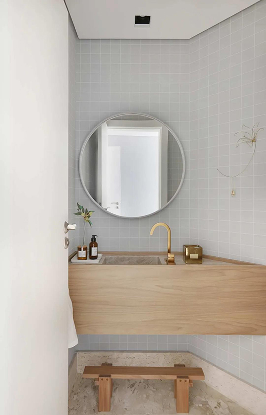 這間獨(dú)衛(wèi)也是搭配給孩子單獨(dú)使用的,靠近地面的墻上設(shè)計(jì)了隔板,用來(lái)放置小孩洗澡時(shí)喜歡的玩具。