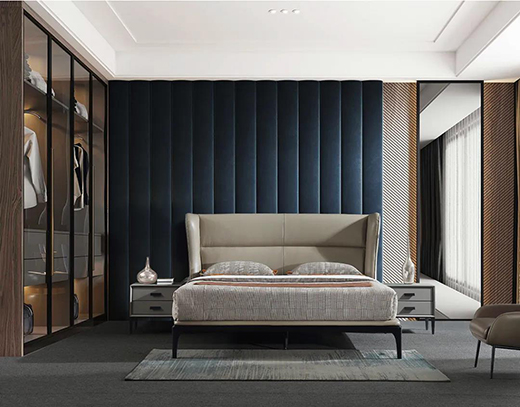 輕奢質(zhì)感的金屬、鏡面家具,在這樣的燈光照射下,更有光澤度,質(zhì)感展露無余。