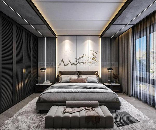 光影存在于空間,給予空間基本照明的同時,更營造了空間氛圍與視覺美學,通過吊頂頂部大板的組合演繹,結合人體感知突顯居室的質感。