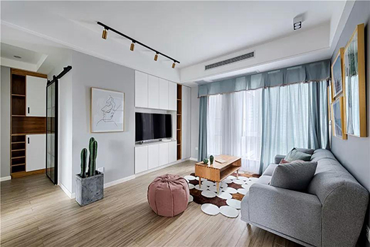 客廳作為家中最重要的社交空間,照明也比較復(fù)雜,單憑一盞主燈很難滿足期照明需求,不妨將射燈、筒燈、壁燈、落地?zé)?、燈帶等進行組合使用。