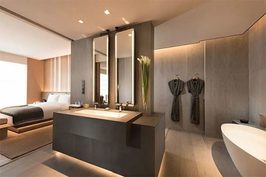 傳統(tǒng)照明形式,主要是一盞燈起到全局照明的作用。而無主等的設(shè)計摒棄了單一的大吊燈形式,用燈帶、筒燈、射燈、落地?zé)舻葻艟咛娲?。多種光源的組合搭配,可以達到視覺上的延伸,豐富空間的層次感。