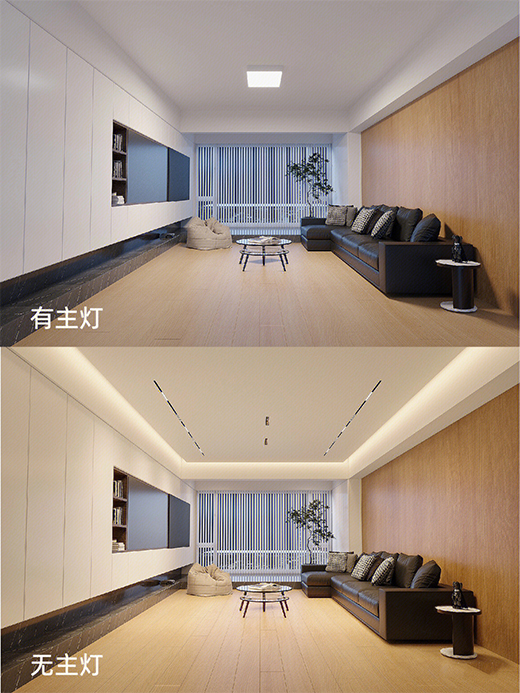 無主燈設計是指空間內沒有安裝大功率的主燈,不僅保證了整體照明需求,還可以按照不同的照明需求進行開關設置,滿足局部照明需求,功能上更加多樣化。