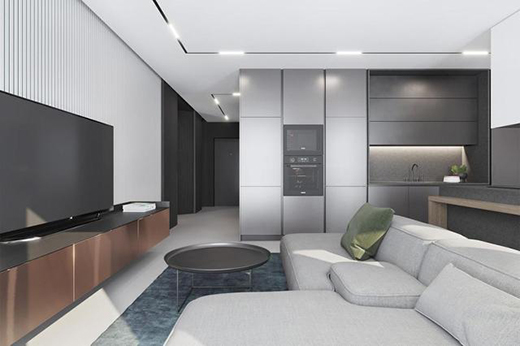 以客廳為例,無(wú)主燈照明基本就是在電視墻、沙發(fā)墻、天花板、電視柜or地臺(tái)等局部地方設(shè)置光源,首先滿足局部空間的照明需求。而且光源設(shè)置在特定的范圍,且一般范圍較小、指向性較強(qiáng),因此只在那個(gè)范圍內(nèi)的光照度比較高。