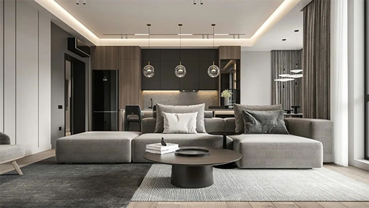 比如茶幾上需要射燈或格柵燈重點(diǎn)照明;看投影的時(shí)候,需要周圍有微光,減弱強(qiáng)烈的明暗對(duì)比帶給眼睛的不適感; 又能用射燈重點(diǎn)呈現(xiàn)鐘愛的擺件。