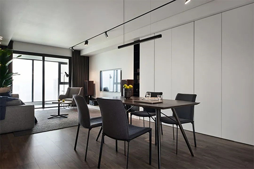 另外無主燈造型極簡(jiǎn)裝飾燈,也能很好的裝飾空間,提高格調(diào),彰顯主人時(shí)尚極簡(jiǎn)氣質(zhì)。無主燈照明設(shè)計(jì)就是展現(xiàn)客廳全貌最好的輔助,不僅光線更為精準(zhǔn)有效,同時(shí)不破壞空間整體格局,并不需要瓦光锃亮的光線,只需要滿足基本照明需求,使整體空間照亮即可。也可以根據(jù)生活習(xí)性單獨(dú)設(shè)置一種模式,常用燈具一般有軌道燈、線性燈、筒燈等。