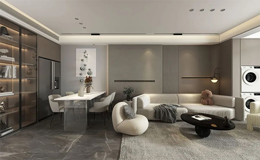 客廳采取無主燈設計,可營造出不同光照氛圍,滿足不同生活場景需要。