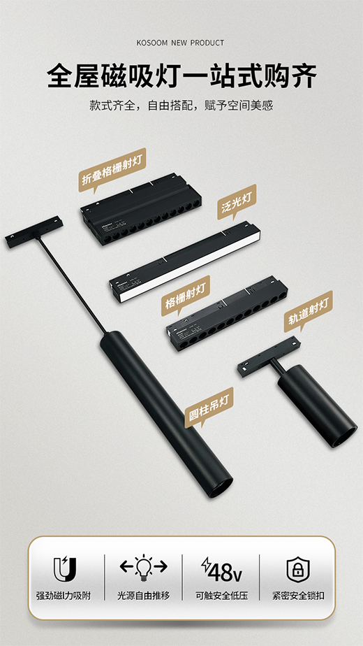 該系列產(chǎn)品不僅具有顯色性高、靈活搭配、強(qiáng)力磁吸等特點(diǎn),更承載安全升級(jí)一體式變壓器,不僅安裝方便,更是控制48V安全電壓,輕松無(wú)憂更換模塊。