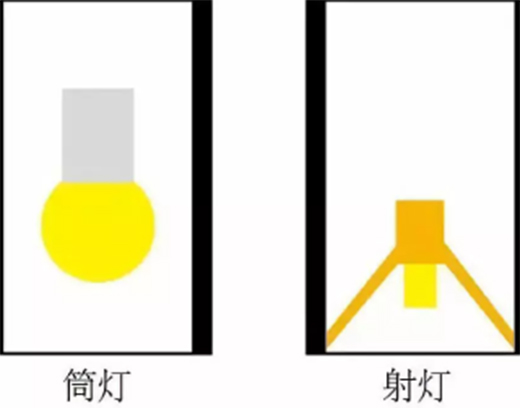 很多人認(rèn)為凸出來(lái)的才是射燈,在吊頂里面嵌入式的都是筒燈,外觀看起來(lái)沒(méi)什么區(qū)別,但實(shí)際燈光效果卻是天差地別,從光源看二者有很大區(qū)別。
