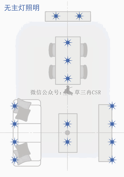 而無(wú)主燈照明則是提前打好一個(gè)網(wǎng)格,在網(wǎng)格中你可以隨意分配和變更同型號(hào)筒燈和射燈的位置。