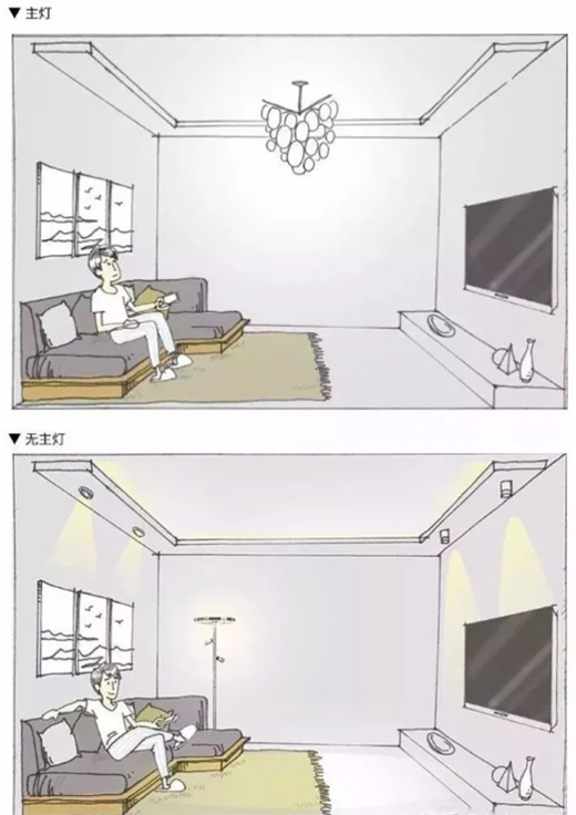 無(wú)主燈照明就是拋棄了又大又亮、天天罩在頭頂?shù)闹鳠?,用更多更具體的光源照亮我們希望照亮的空間,照明方式更加精準(zhǔn)、具體,更加貼合實(shí)際使用需求。