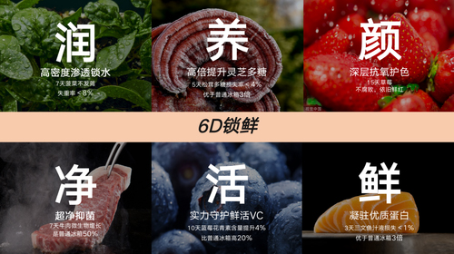 分子保鮮科技的技術(shù)原理就是利用磁場感應(yīng)實現(xiàn)不受限的微觀矢量保鮮,讓食材達(dá)到潤、養(yǎng)、顏、凈、活、鮮的6D保鮮效果。