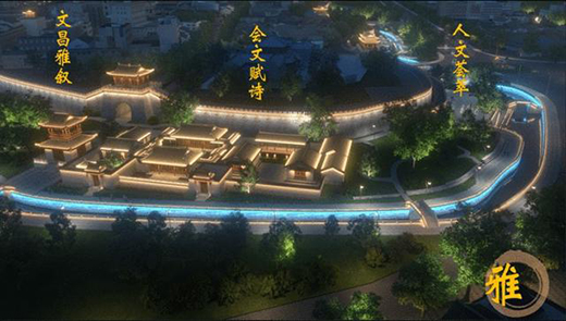 工程秉承“古韻田園,產城融合”的理念,以城墻、城門、城河為主線,結合人文民俗、歷史文化等特色,堅持動靜結合,規(guī)劃為“史、風、雅、韻、頌”五大區(qū)塊,布局“金戈征程”“古城記憶”“星月天地”“火樹‘螢’光”“光繪八景”“文昌雅敘”“會文賦詩”“名人薈萃”“韻動人生”“元始盛宴”“音樂搖籃”“古城新頌”十二處主題夜景,綻放出“光敘千年古鎮(zhèn),凝望新登古今”的光影美景,為周邊的居民和游客唱一曲獨屬于新登古城的文化視覺新曲。