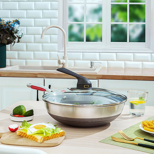 營銷只是輔助,強大的研發(fā)實力和過硬的產(chǎn)品實力才是品牌發(fā)展的長遠(yuǎn)之計??蛋秃諝v史性地開創(chuàng)了“蜂窩鍋”這個鍋具新品類,解決了傳統(tǒng)特氟龍涂層不粘鍋涂層容易脫落、鋁鍋鋁離子析出等安全隱患。它運用蜂窩蝕刻工藝推出蜂窩鍋,在鍋壁內(nèi)蝕刻出精密凹凸鍋體,形成開放式蜂窩網(wǎng)狀結(jié)構(gòu),從而達(dá)到物理隔絕食物、鍋鏟與防粘涂層,以提高用戶的健康飲食品質(zhì)。