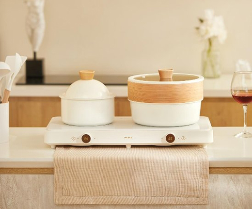 現在很多家庭喜歡開放式廚房,這款聚嗨爐左右分工、噪音小與油煙輕的特點,讓它可以較多得應用在開放式廚房中,中島臺,餐桌上,甚至是戶外露營都能出現它的身影,高顏值的外觀也為家居風格增添了一抹清新的色彩。