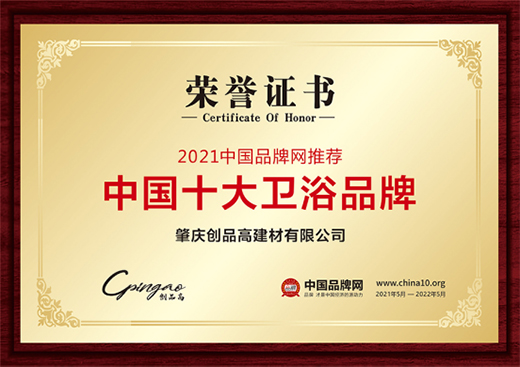 喜報(bào):熱烈慶祝創(chuàng)品高衛(wèi)浴榮獲“中國十大品牌”獎項(xiàng)