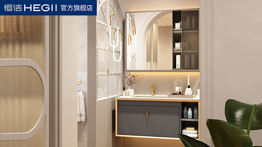 作為衛(wèi)浴空間顏值和材質(zhì)缺一不可的大家具 - 浴室柜,本次選用恒潔全新美妝浴室柜,整體外觀采用遠(yuǎn)山黛色,輕奢高雅而又不失時(shí)尚現(xiàn)代。強(qiáng)大的儲(chǔ)物收納共有七大功能分區(qū),有藏有露,錯(cuò)落有致,真正實(shí)現(xiàn)收納增容。同時(shí)浴室柜板材采用了恒潔防水多層實(shí)木,基材防水防潮性能優(yōu)于國(guó)標(biāo)4倍,面對(duì)衛(wèi)浴間潮濕環(huán)境下仍能保持歷久常新。