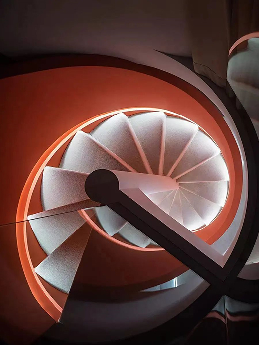 常見(jiàn)的燈帶位于樓梯臺(tái)階、墻壁、橫梁等處,可以削弱空間的體量感。