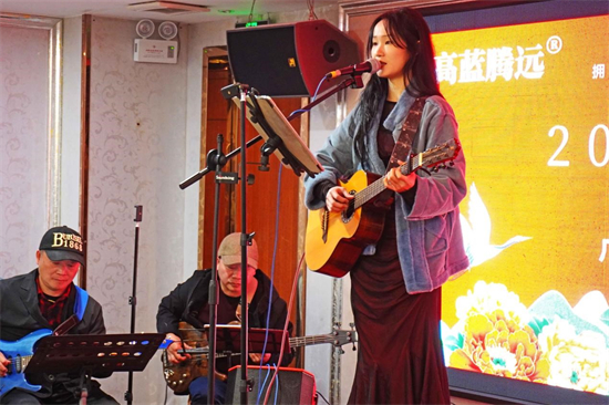 隨著魏總一曲激昂的《午夜怨曲》獻(xiàn)唱,年會(huì)的氣氛瞬間被點(diǎn)燃。歌聲中透露出的堅(jiān)定與執(zhí)著,仿佛是高藍(lán)騰遠(yuǎn)人不斷前行的寫(xiě)照。接下來(lái)的節(jié)目更是精彩紛呈,孔穎欣帶來(lái)的《一人有一個(gè)夢(mèng)想》和《下一站天后》唱出了每個(gè)人心中的夢(mèng)想與追求;藍(lán)騰嘉賓的真情獻(xiàn)唱《我應(yīng)該》將整個(gè)盛會(huì)推向高潮。