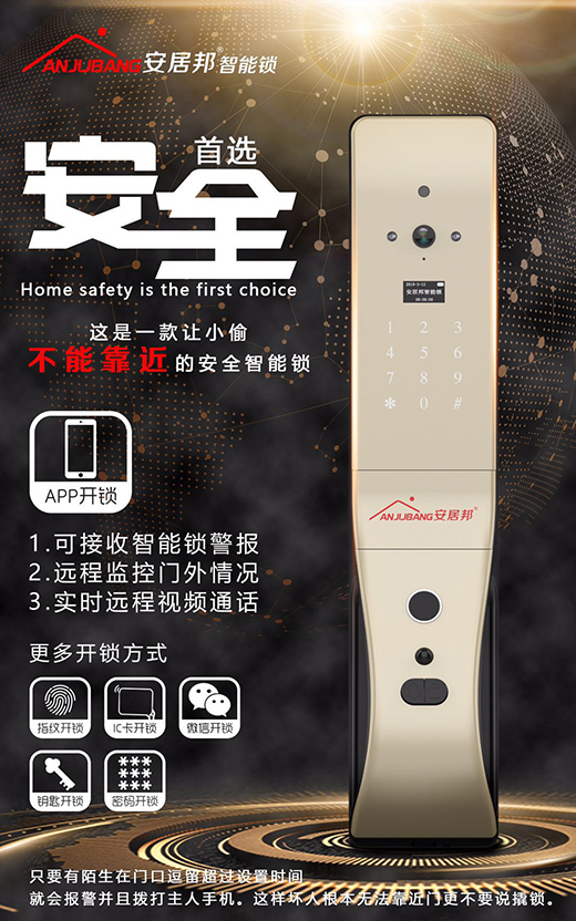 然而,消費(fèi)者在選購智能鎖的時(shí)候,有人關(guān)注外觀,有人關(guān)注功能,有人關(guān)注價(jià)格,但是更多人關(guān)注的是智能鎖的安全性,目前市場上很多品牌都在打安全牌,有的品牌說他們采用的是C級(jí)鎖芯,有的品牌說他們采用不銹鋼304鎖體。而安居邦的A4打造的是一款讓小偷根本無法靠近的真正的安全智能鎖!A4貓眼全自動(dòng)智能鎖可遠(yuǎn)程監(jiān)控門外情況、若門外有可疑人員逗留,智能鎖會(huì)及時(shí)向用戶發(fā)出安全警報(bào),絲毫不給“不法之徒”靠近家門的機(jī)會(huì)。因而,A4產(chǎn)品一上市,便贏得了廣大消費(fèi)者的青睞與支持。