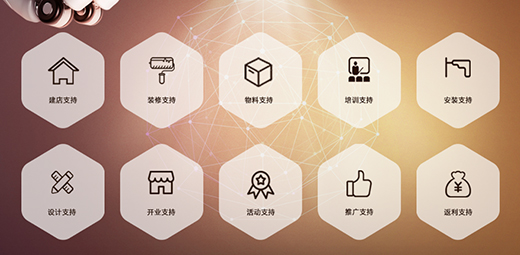 (1)建店支持:對經銷商所加盟的區(qū)域市場進行風險評估,在評定該區(qū)域適合開設門店后,再與經銷商一同尋找最佳的開店地址。