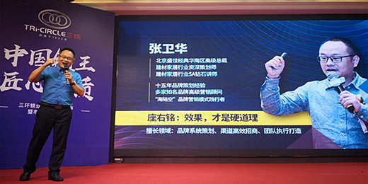 本次會(huì)議,三環(huán)鎖業(yè)為使現(xiàn)場(chǎng)經(jīng)銷(xiāo)商家人們更加直白地了解品牌渠道升級(jí)的規(guī)劃,特意邀請(qǐng)到盛世經(jīng)典傳媒集團(tuán)總經(jīng)理張衛(wèi)華先生為大家實(shí)戰(zhàn)演示終端落地應(yīng)用的方法。