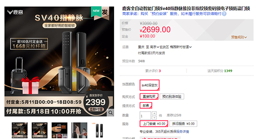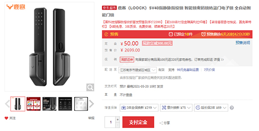 目前,在天貓、京東平臺(tái),鹿客指靜脈智能鎖SV40均已上架預(yù)售,時(shí)間為7天。