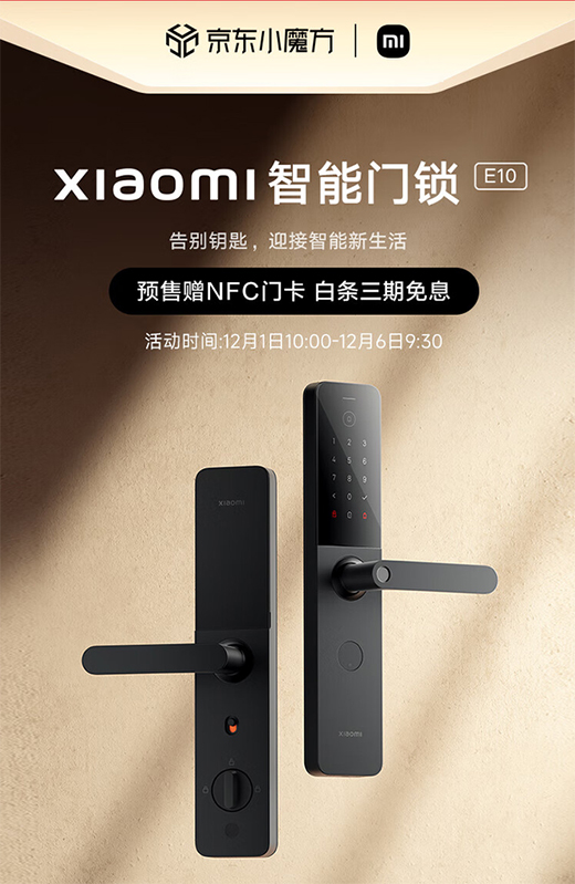 目前,小米智能門鎖E10已在京東平臺開啟預售,預售價僅為799元,參與預售的消費者還將獲得NFC門卡。