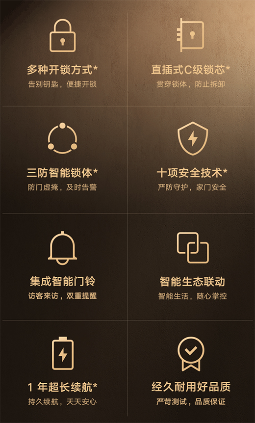 此外,小米智能門鎖 E10 采用 4 節(jié) 5 號電池供電即可帶來長達12 個月超長續(xù)航。在售后方面,小米為該款智能鎖新品提供 “3 年免費保修,首次免費上門安裝”的貼心服務。
