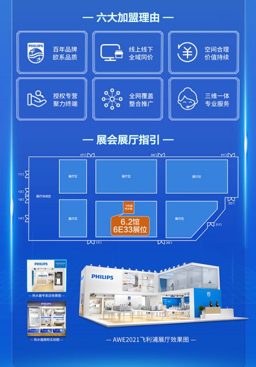 目前,飛利浦熱水器正面向全國招商,飛利浦熱水器團(tuán)隊(duì)向各行業(yè)有識之士發(fā)出了熱情邀請相聚上海。AWE作為承載行業(yè)創(chuàng)新成果展示與創(chuàng)新加速器功能的平臺,必定萬眾矚目,精彩紛呈,飛利浦的全屋健康用水解決方式也十分令人期待,3月23日-3月25日,讓我們拭目以待。