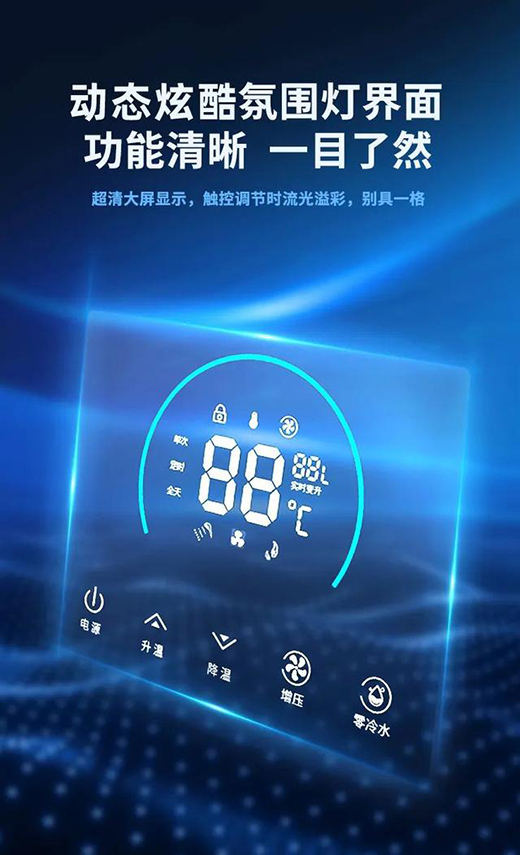 在觸控的設(shè)計上,采用動態(tài)燈炫酷界面,每一次觸摸都流光溢彩,具有獨(dú)特的藝術(shù)格調(diào)與操控樂趣,給用戶帶來愉悅的觸覺和視覺感受。