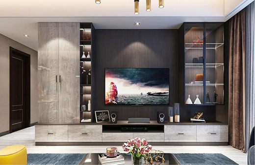 歡迎來到千年舟卡拉托納系列客廳空間,空間整體是以藏青靚木柜體搭配龍園盛雪的柜門,給人營造了一種自然樸實(shí)的感覺;同時(shí)搭配玻璃柜門,打造輕奢的居家環(huán)境。當(dāng)您下班歸來,愛人在沙發(fā)上看著電視,柜體層板燈帶溫柔不刺眼,整體的溫柔又有誰能抵擋呢?