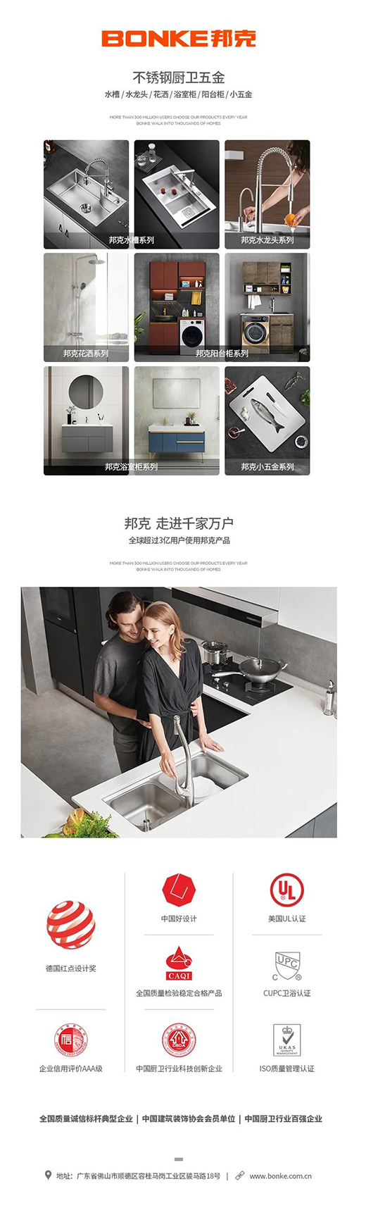 今年,邦克聚焦全屋定制和智能廚衛(wèi)功能五金產(chǎn)品,打造場(chǎng)景化智能家居生態(tài)。在現(xiàn)有產(chǎn)品矩陣的基礎(chǔ)上,創(chuàng)新推出全新原廠設(shè)計(jì)的水觸媒智能凈化水槽、梵拉智能觸控水龍頭、洗杯器手工水槽、小蠻腰出水龍頭等系列新品,充分詮釋了國(guó)潮品牌的創(chuàng)新魅力。