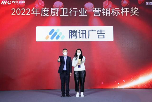 會上,還舉行了2022年度廚衛(wèi)產(chǎn)業(yè)各獎項的授牌儀式。騰訊廣告榮獲由中國五金制品協(xié)會、中國建筑學(xué)會室內(nèi)設(shè)計分會、奧維云網(wǎng)(AVC)聯(lián)合頒發(fā)的“2022年度廚衛(wèi)行業(yè)·營銷標(biāo)桿獎",也是本次唯一獲得該獎項的平臺!