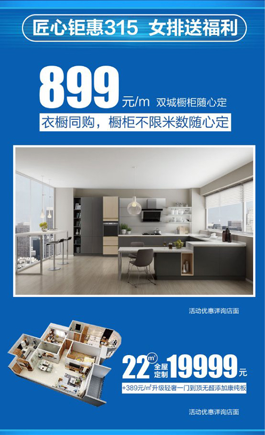 「女排對大牌,315匠心品質(zhì)」活動,司米櫥柜、索菲亞與中國女排聯(lián)袂送福利,推出315匠心鉅惠之雙城櫥柜隨心定,只要衣櫥同購,即可享受899元/m不限米數(shù)的雙城櫥柜定購。雙城櫥柜作為司米櫥柜產(chǎn)品中深受消費(fèi)者喜愛的剛需之王,既有精致優(yōu)雅的風(fēng)格和外觀,又有省時省力的三角動線設(shè)計(jì)和收納功能的搭配,在這315匠心巨獻(xiàn)之際,司米櫥柜以低于半價的價格,將顏值與實(shí)用并存的法式櫥柜送到你手中,是不可錯過的勁爆優(yōu)惠!