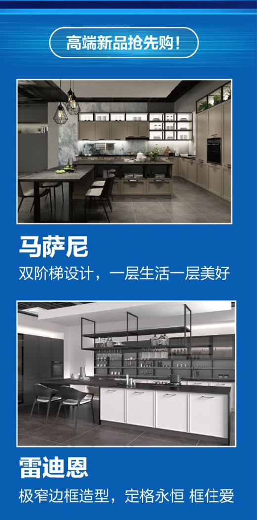 它來了,它帶著新品來了!女排力薦新品之司米艾克斯櫥柜,鉅惠價僅需11999元/套,集實(shí)用與優(yōu)雅于一身,以獨(dú)特的珠光雙飾面打造匠心獨(dú)具的司米新剛需之王;全新的時尚啞光烤漆拉維爾,活動期間僅需12999元/套,時尚簡潔的線條和配色是營造浪漫廚房的品質(zhì)設(shè)計(jì);此外,還有一直以來備受歡迎的簡歐款楓丹白露櫥柜,也推出了315鉅惠價11999元/套。以上三款櫥柜套餐均為3米標(biāo)準(zhǔn)地柜、3米標(biāo)準(zhǔn)臺面和1米標(biāo)準(zhǔn)吊柜的配置,并且再送星盆龍頭、煙機(jī)灶具和高抽拉籃。