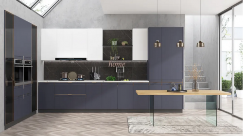 歐派櫥柜大面積地采用啞藍(lán)調(diào),返璞歸真的純色讓人仿佛置身于暖熏和風(fēng),寧?kù)o融融的海邊。