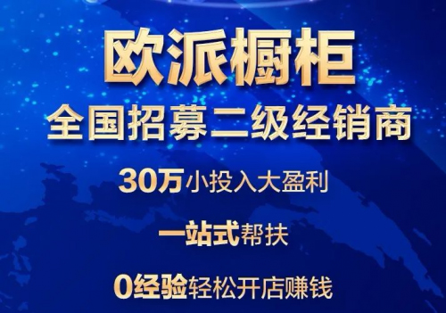 近期,歐派櫥柜火熱招募全國二級經(jīng)銷商,僅需30萬微投入,即可無憂經(jīng)營,帶你走上更加安全穩(wěn)健的創(chuàng)業(yè)道路!