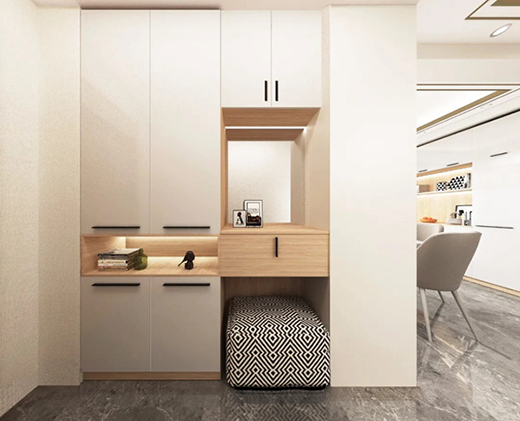 下方留出可以擺放小凳子的空間,換鞋的時(shí)候可以從容坐下,補(bǔ)妝時(shí)用作化妝凳也不擔(dān)心手抖。