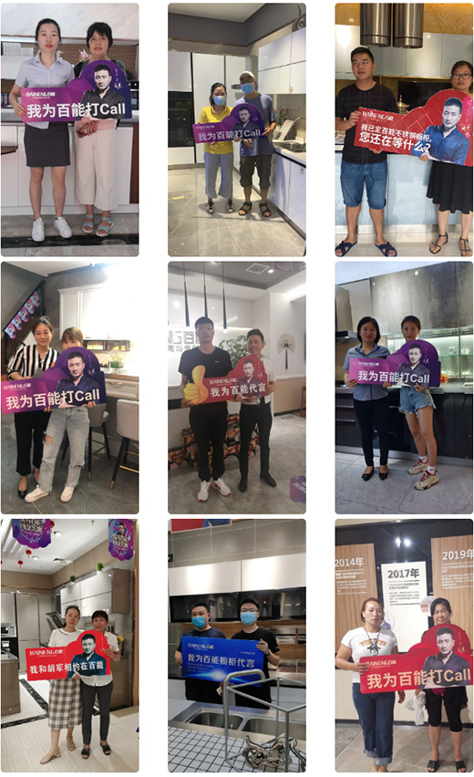 耐用環(huán)保的優(yōu)質(zhì)產(chǎn)品,令人驚喜的優(yōu)惠政策,細致周到的服務(wù)品質(zhì),吸引消費者光臨全國各地的百能門店,他們?yōu)榘倌芙】淡h(huán)保的品質(zhì)打動,親身為百能櫥柜“代言”。